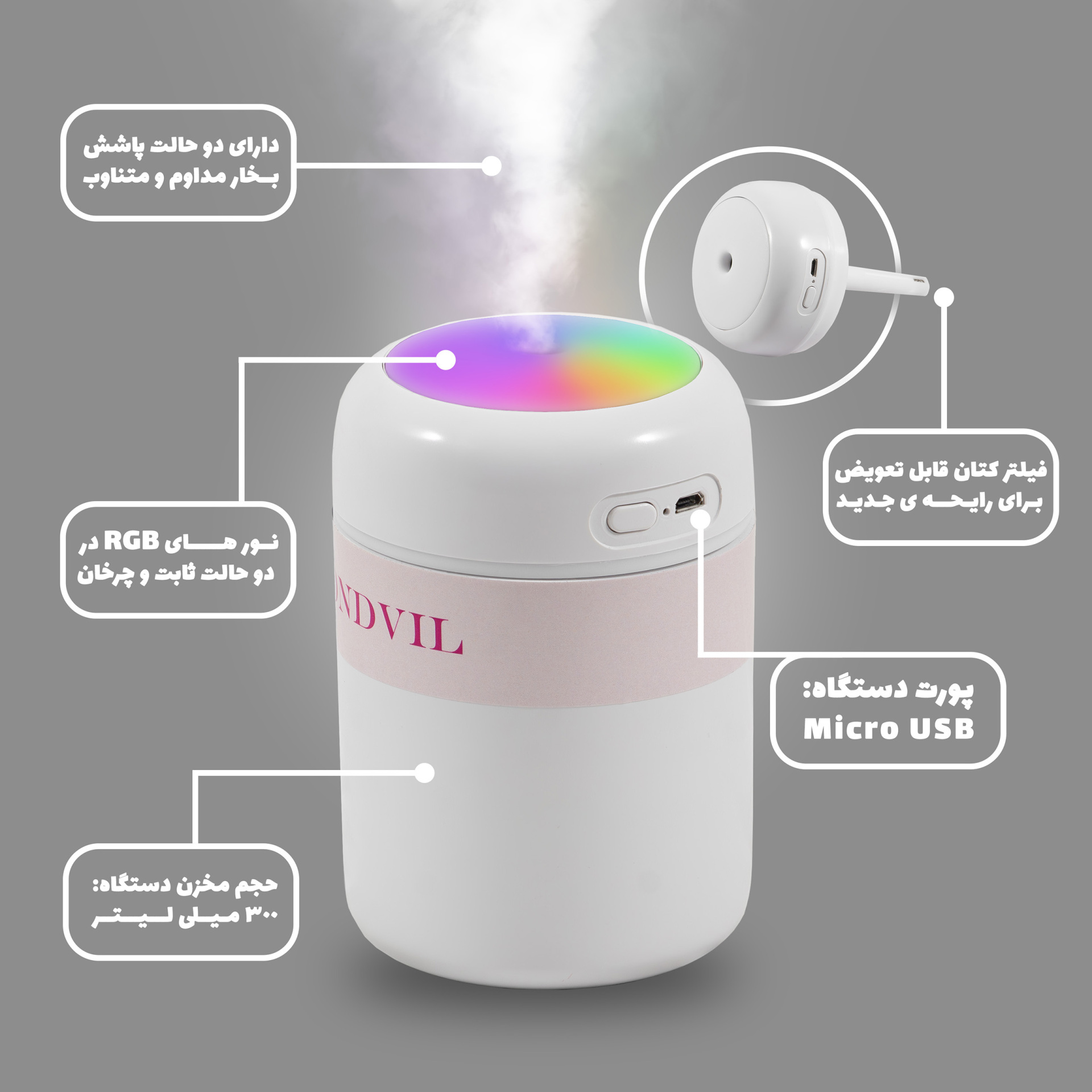 - یک دستگاه اولتراسونیک مرطوبکننده هوا با کابل USB و دو فیلتر کتان