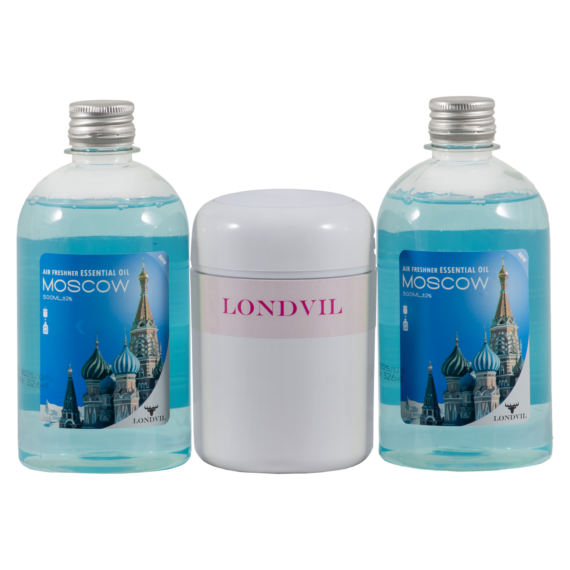 - دو محلول 500 میلیلیتری حاوی اسانسهای خوشبوکننده هوا با رایحه ی مسکو